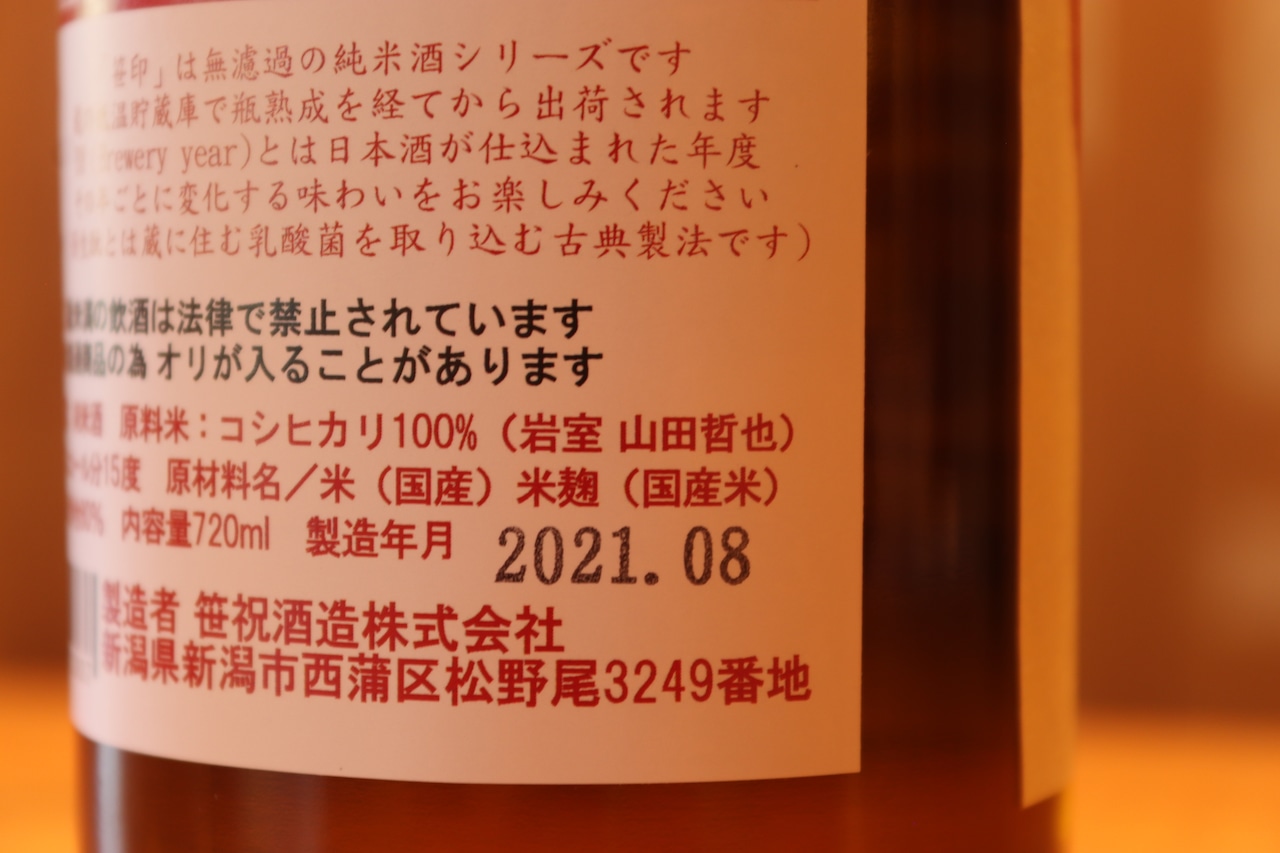 笹祝酒造の無濾過純米「笹印シリーズ」の最新作です。地元、新潟市西蒲区で育てられたコシヒカリを100%使用しています。