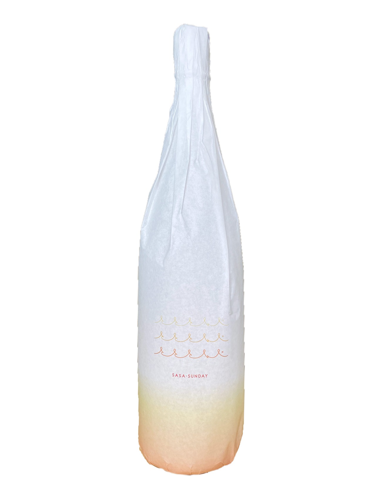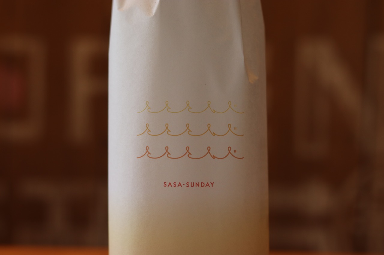 「SAN(酸)・SUN(太陽)・SUNDAY(日曜日) サササンデーは「酸」を活かした甘酸っぱいお酒、「太陽」の出ている昼間からでも、明日から仕事の「日曜日」でも気軽に呑める、ライトで気持ちの良い日本酒です。ロゴは、笹祝からも小高い丘を越えてすぐの海岸線、午後の日差しや、波のイメージでひらがなの「さささんでー」を連ねました。 また、透明感あるガラス瓶で家族や大切な人と過ごす、ゆったりした時間や、美しい地域の風景が酒瓶から透けて見える様子をイメージしています。